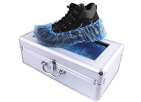 Hands-free shoe cover dispensing machine for clean environments. Provides quick, easy access to disposable covers, reducing contamination risks and maintaining hygiene in sensitive workplaces.